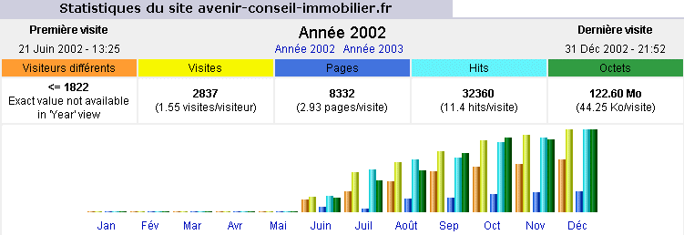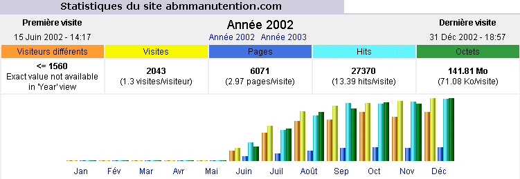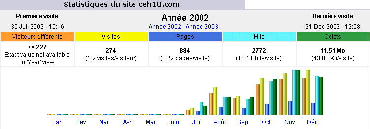 Nombre de visites du site apres son hébergement et son référencement par www.Bourges.net : 394 par mois (décembre 2002)