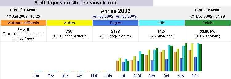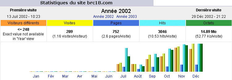 Nombre de visites du site avant son hébergement et son référencement par www.Bourges.net : 80 par mois (juillet 2002)